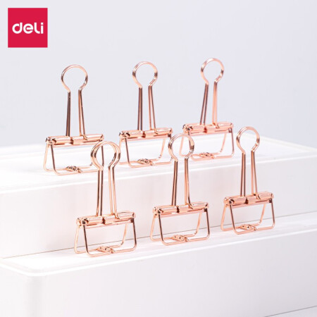 得力 deli 6只32mm玫瑰金鏤空票夾長尾夾 辦公票夾時(shí)尚燕尾夾